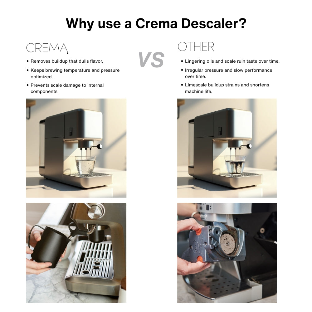 Hard water messing with your brew? If your machine’s sputtering, slowing down, or pulling weak shots, it might be crying out for a deep clean. Our Descaler & Cleaner is designed to safely remove mineral buildup inside your espresso or coffee machine — helping restore water flow, maintain brew temp, and bring back that full-bodied flavor you love.