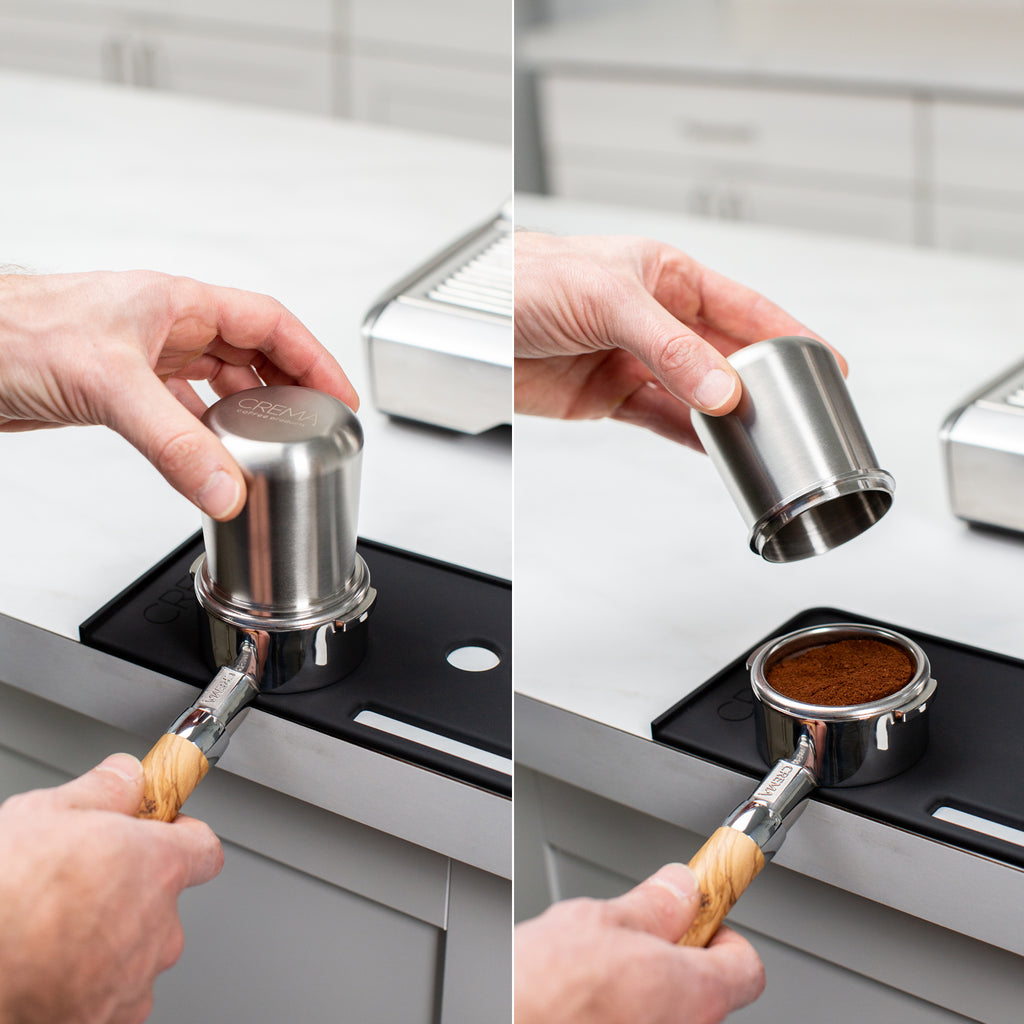 The Crema 58mm Dosing Cup, perfectly paired with your standard 58mm portafilter, is an invaluable workflow optimizer for your espresso setup. Our Dosing Cups will help you take your beans from bag, to the grinder, to your portafilter -- all without fuss, mess and without losing your precious grounds.